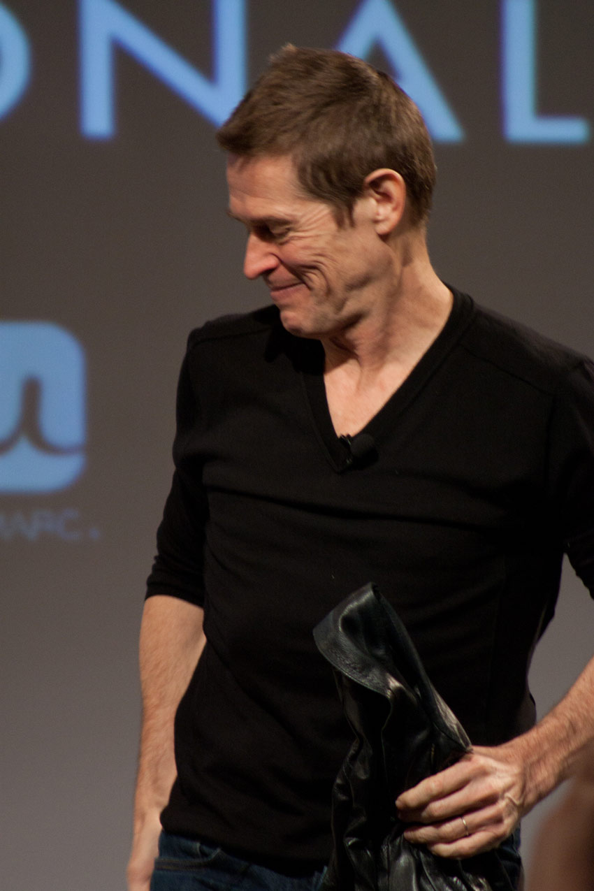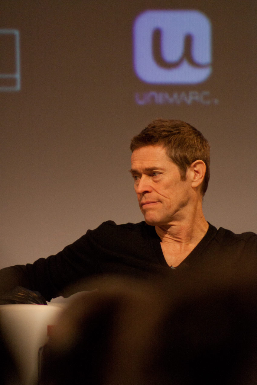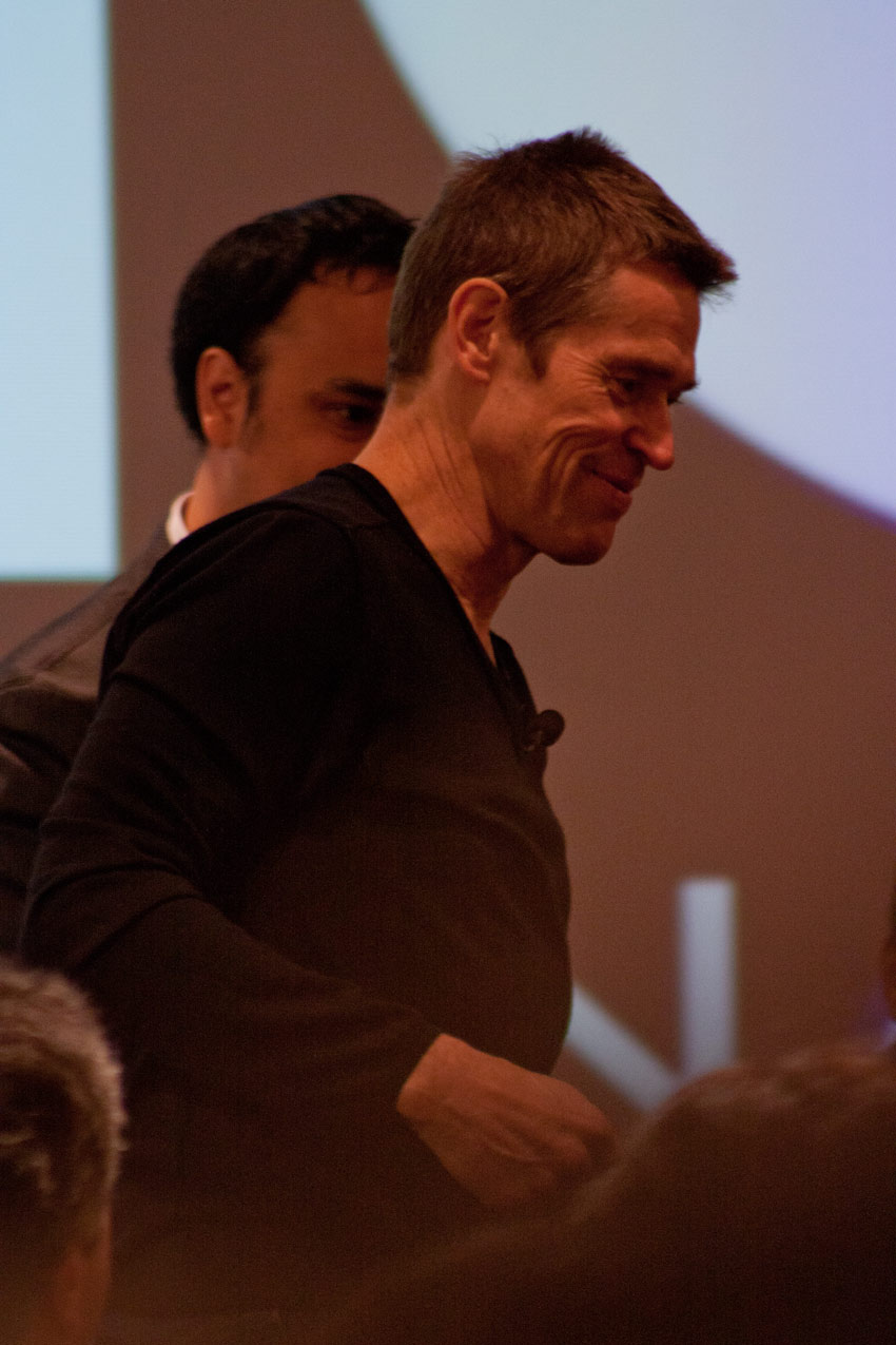 No sé si sería mi fiebre y sus alucinaciones correspondientes a ese estado, pero me pareció especialmente extraño, por no decir insólito y muy escueto, que a Willem Dafoe, un hombre por lo demás de muy buen humor, los dos moderadores presentes no le hicieran preguntas muy específicas, optando casi siempre por preguntas excesivamente generales. En algunos casos reiterativas también, como por ejemplo, aquellas sobre su relación con la industria más mainstream de Hollywood y aquella independiente; una alternancia que este actor domina especialmente. Dafoe, por su parte bastante sintético en sus respuestas, con este tipo de preguntas no podía elaborar mucho más allá, coincidiendo en sus respuestas con lo que uno podría esperar de un sinnúmero de actores en la misma situación. Aquí había que hincarle el diente. Dafoe es un actor que ha trabajado con directores de la talla de David Lynch, Martin Scorsese, Wes Anderson, David Cronenberg, Oliver Stone y Lars von Trier, y no ahondar especialmente en ninguno de ellos, me pareció, personalmente, muy poco afortunado. Raro, pues los montajes en video que se mostraron de su carrera, muy bien hechos, sí mostraban en detalle escenas de varias de estas películas. Extraño también, siendo que los mismos dos moderadores habían mostrado un trabajo muy detallado y de excelencia en el encuentro con el actor Ricardo Darín, el sábado anterior a este evento; una conversación memorable. Lamentablemente además, una de las moderadoras estaba afónica, así que eso ya la restringía bastante en cualquier tipo de intercambio vocal.