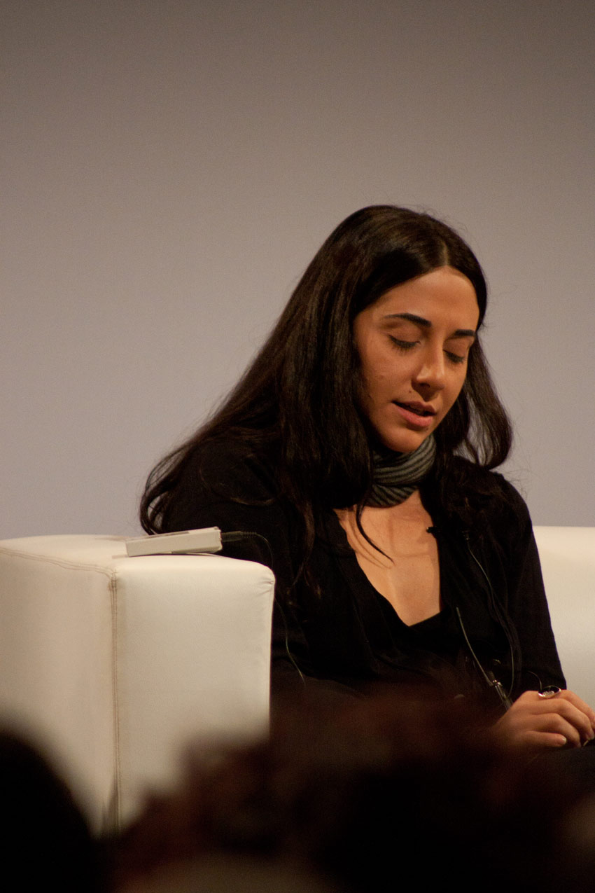 Luego de algunos lamentables desperfectos técnicos variados en la sala -el director técnico del evento estaba aparentemente detrás mío, en una mesa de control, con el resto del equipo humano y parece que estaba a punto de sufrir un ataque cardíaco por sus audibles vociferaciones- siguió una larga conversación que colocó su acento principalmente en Colagrande y su trabajo. Desde su aproximación desde el video arte hacia el cine de ficción, en una carrera que aún es muy breve -tres películas, como ella misma recordaba con humor- hasta su trabajo con Dafoe en «A Woman», una película de muy bajo presupuesto -como ocurre generalmente en el cine independiente de este estilo- trató la entrevista, dividiendo los bloques de preguntas con varios fragmentos de la película mencionada.