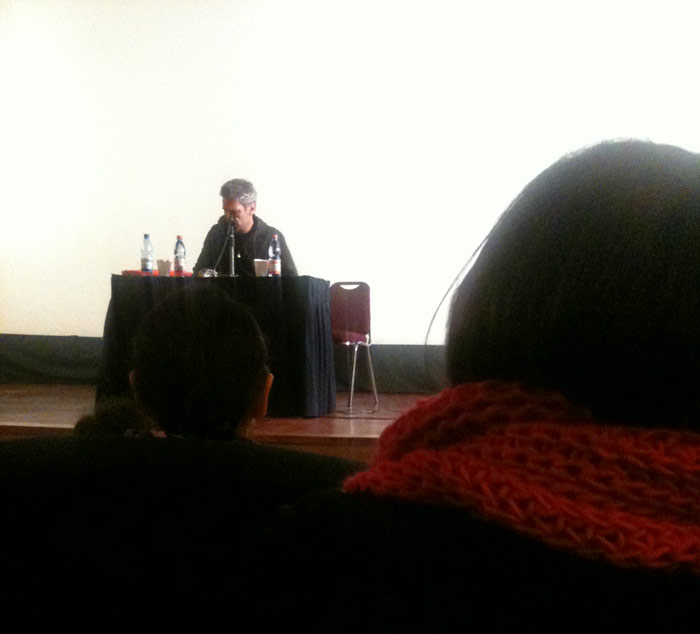 Sus conferencias tocaron distintos nexos, desde el movimiento como «espectáculo», o la ciudad y el cine unidos por la pasión del movimiento si se quiere, con los archi conocidos ejemplos del pseudo documentalismo de los Lumiere hasta las famosas city symphonies. Otro tema tocado fue el concepto mimético de la experiencia del espectador, cuando este observa en la pantalla algo que quiere realizar (como por ejemplo comer, cita él) en este caso, ciudades que el espectador va a «conocer» a través de este medio y que le gustaría visitar. Sobre esto último, las ciudades como objeto de deseo,o las ciudades y el conocimiento virtual/real de ellas, Pauls leyó un largo texto, del que pude encontrar un fragmento con que inició, literalmente, la primera sesión: