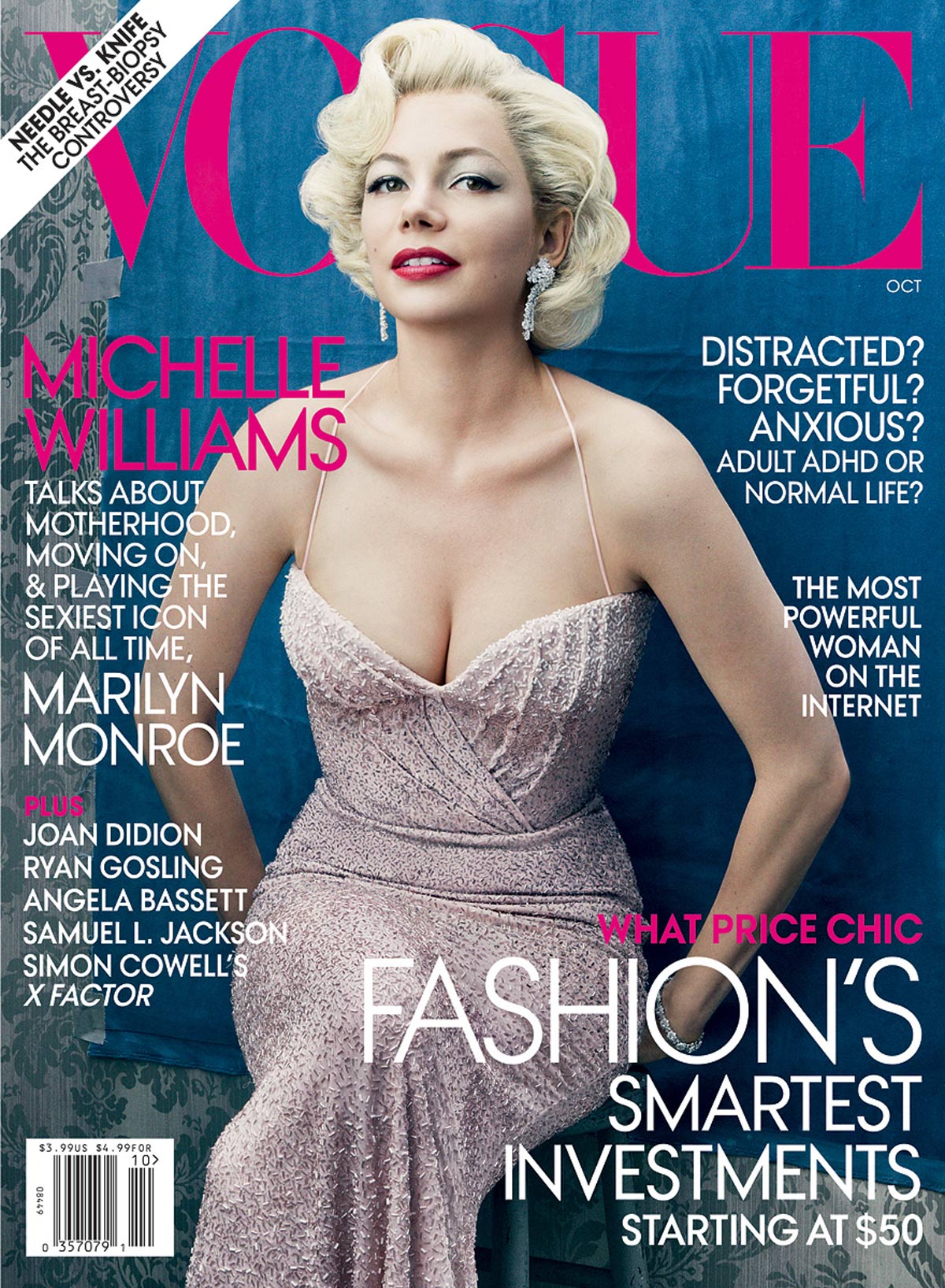 ¡Qué regalo!. Mientras seguimos esperando la película «My week with Marilyn» (2011) dirigida por Simon Curts y donde la cada vez más notable actriz Michelle Williams (Blue Valentine, Meek’s Cutoff) personifica al gran ícono femenino del cine, Marilyn Monroe, la revista Vogue ha lanzado una sesión de fotos al estilo REDUX.