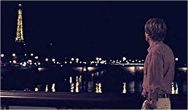 Ya en el desenlace de la película , se muestra a Gil caminando por el puente de París (Alexandre III) se escuchan las campanas: ya es la medianoche en el puente completamente iluminado. Se muestra, utilizando un plano americano, la ciudad de fondo con la torre Eiffel completamente iluminada (Imagen 8).