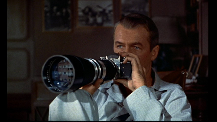 En el interior, el paneo es un resumen aún más perfecto: la imagen recorre en orden la frente sudada del protagonista, su cara dormida, su nombre en un yeso, luego vuela sobre una pared cercana y vemos una serie de fotografías –su trabajo- todas ellas riesgosas. Recorremos rápidamente, en el vuelo, una antigua cámara fotográfica –su fuelle totalmente destruído- y cerca de ella la imagen causante de este hecho y la pierna quebrada del fotógrafo Jeffries. Al final de la secuencia, una pila de revistas de moda, con la fotografía de una mujer muy bella en la portada y enmarcada junto a estas, la foto en negativo: es la novia del protagonista, Lisa Carol Freement (Grace Kelly). Un resumen visual donde el sonido ya se anuncia como totalmente subyugado a la imagen y con clara presentación de una cáscara donde todos los personajes se mueven en su borde, rodeando un vacío, donde se presentan las micro historias que irán desarrollándose y alimentando una trama principal.