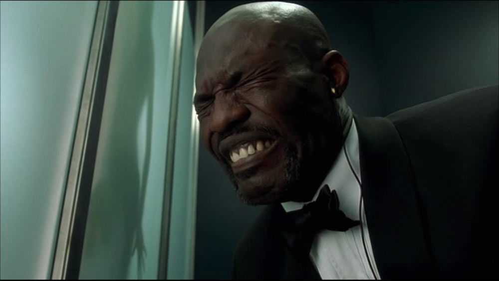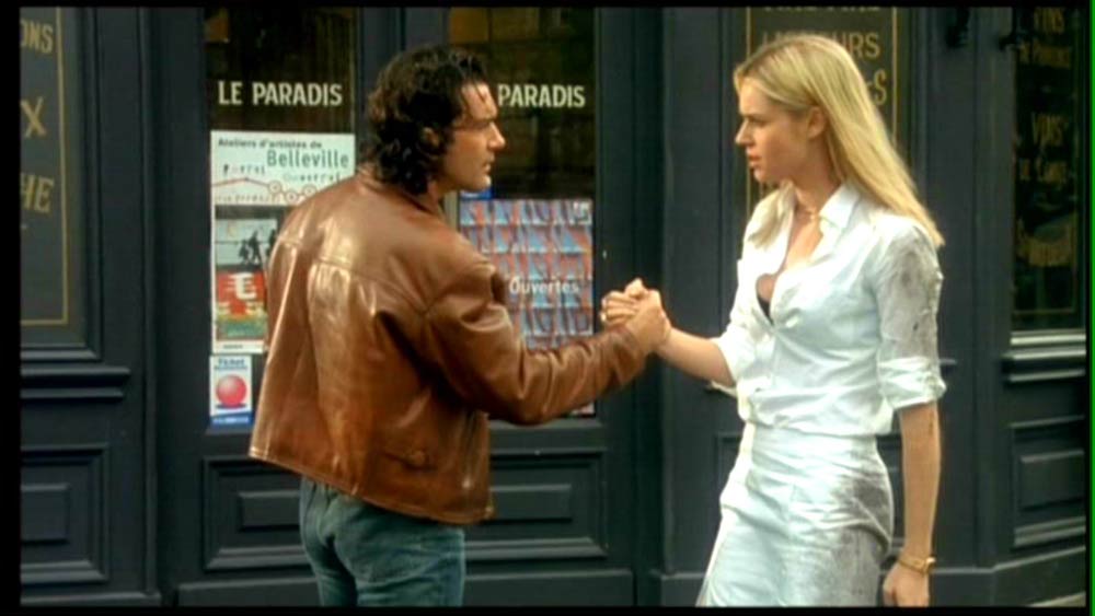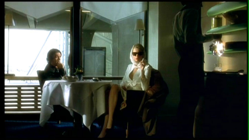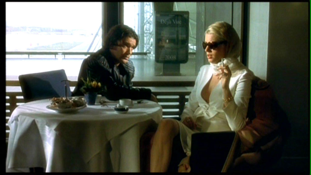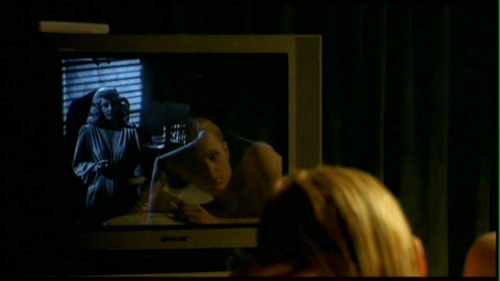 La escena corresponde a la traición –disparo a sangre fría incluído- del personaje de Phyllis (Bárbara Stanwyck) a su amante Walter Neff (Fred MacMurray), luego de conseguir el dinero que ella deseaba de su asesinado marido a traves de éste, en Double Indemnity (1944), del director Billy Wilder. Con esta escena Femme Fatale comienza, desde sus primeros minutos, un proceso en que irá estructurando su propia trama tomando prestados elementos de la trama de Double Indemnity. Aunque no tomará elementos prestados de la estructura narrativa de este clásico del cine negro, que está contruída en torno a un largo flashback del moribundo Walter Neff, y que como los que David Bordwell menciona en los libros Film History o en La Narración en el Cine de Ficción, está claramente expuesto y ordenado en una estructura narrativa clásica, y no una modular, como las que Cameron indica en el cine de los años noventa. No sólo se hará referencia a la trama de este clásico de forma parcial en Femme Fatale, sino que se mimetizará completamente este fragmento del filme cuando la protagonista del filme de Brian de Palma pronuncie la frase “I’m bad to the heart”, siete años después de este visionado del que fuimos testigos, en el inicio de Femme Fatale. Esta frase será pronunciada pocas horas antes de que nuestra mujer fatal asesine a su amante a sangre fría, luego de conseguir el dinero de un también asesinado esposo. ¿Coincidencia? claro que no.