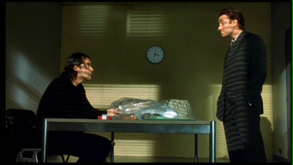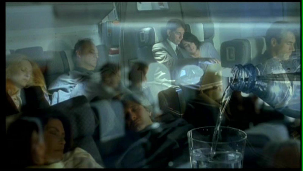 Asimismo, el arte de la película nuevamente refuerza la idea de que esto no es más que una temporalidad alterna de la narrativa modular, cuando en el fondo de diferentes planos durante el sueño, diferentes personajes cuelgan y descuelgan, casi siempre en la lejanía, dos tipos de afiches por la ciudad. Uno de ellos que dice textualmente Déjà vu (¡no podemos ser más obvios!), y otro que muestra una imagen del cuadro “Ofelia” (1853) de John Everett Millais, con el año 2008 sobre impreso bajo el rostro de la mujer muerta en el agua, pero con sus rasgos sospechosamente alterados para parecerse a nuestra protagonista. Por otra parte, la idea de que el tiempo no avanza en un sueño, se manifiesta a través de los diferentes relojes que aparecen durante el mundo onírico –en la parte posterior de un auto de los antagonistas, en la embajada, en la habitación de interrogación de la policía- todos detenidos exactamente a las 15:35 pm, la hora en que nuestra protagonista se ha quedado dormida. Marcando el minuto preciso en que la protagonista se ha convertido en narradora.