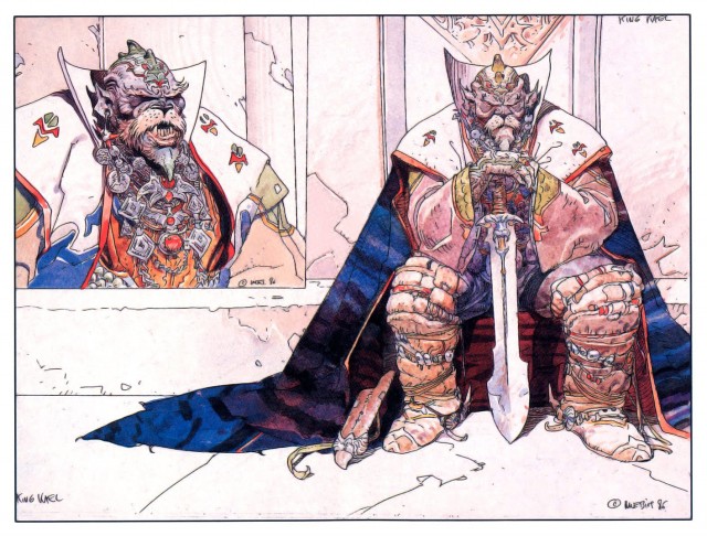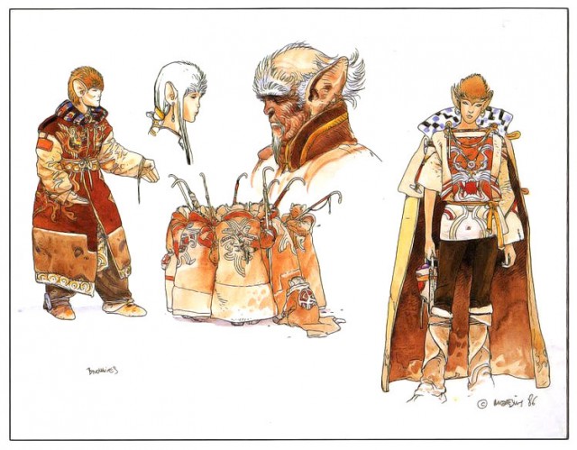 Continuamos con una segunda galería con las impresionantes ilustraciones de Moebius para el cine, esta vez con los diseños conceptuales de personajes, vestuarios y escenificación para la película Willow (1988). Película situada en un mundo fantástico de hechiceras, enanos aprendices de magos, mounstros, héroes espadachines y extraños villanos, fue dirigida por Ron Howard (Una mente brillante). Producida por George Lucas (La Guerra de las Galaxias) y basada en una historia que éste mismo escribió planeando desarrollar una segunda franquicia -luego de su famosa saga galáctica- que se desarrollara en un nuevo mundo, construído a partir de reinterpretaciones de la mitología clásica.