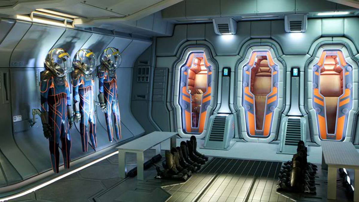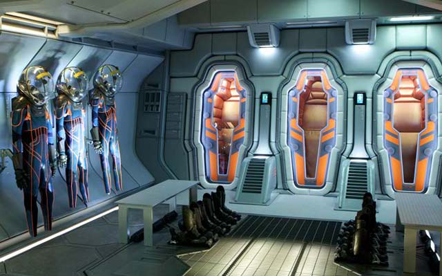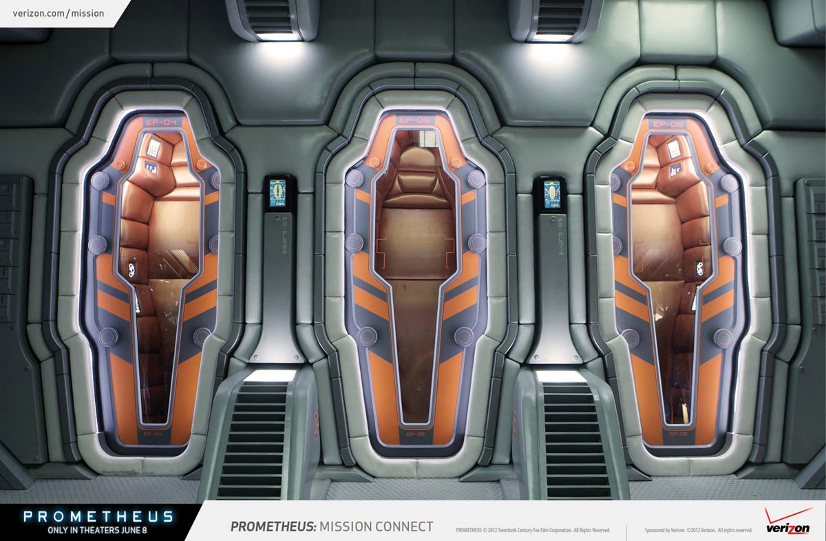 A continuación unas imágenes centradas principalmente en los espacios interiores de la nave Prometheus, que le da el título al largometraje. El diseño de producción es de Arthur Max, notable diseñador que ha trabajado con Scott en varias oportunidades (Black Hawk Down, Gladiator, American Gangster) y también con el director David Fincher, en La Habitación del Pánico y Seven.